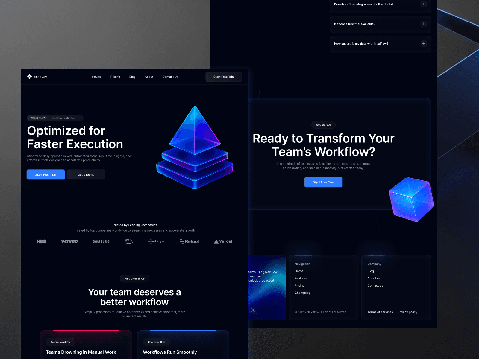 Nexiflow is a sleek Framer SaaS template crafted for innovative startups and digital products. Designed with clarity, performance, and visual precision in mind — it gives your platform a professional presence from day one.